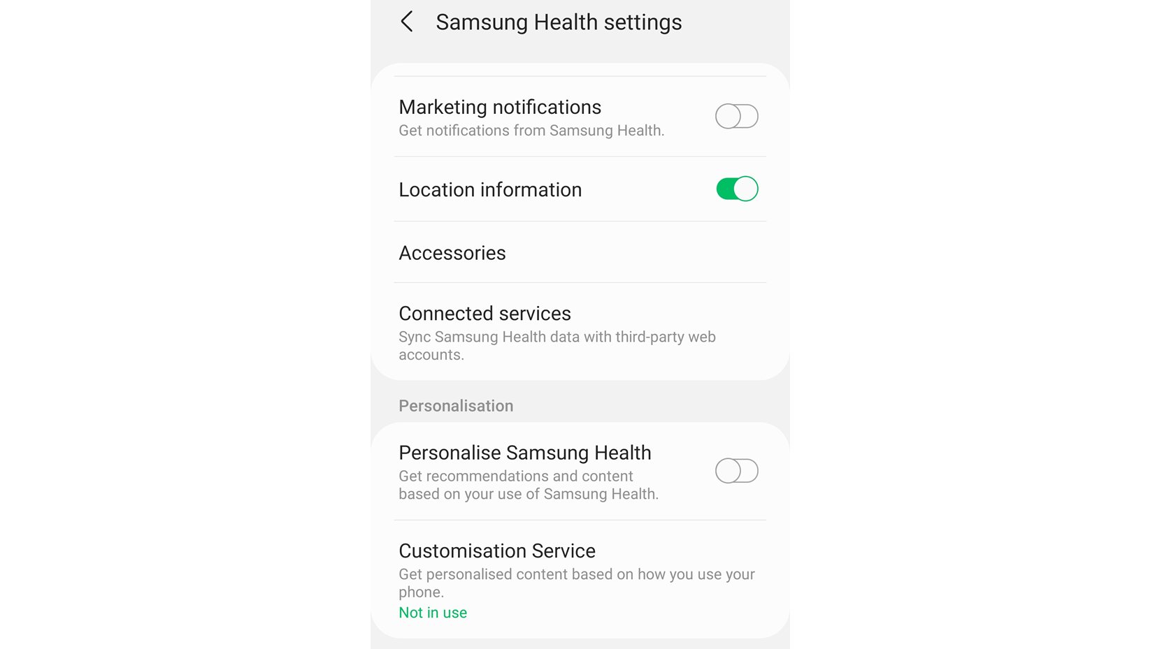 Wolfie Christl On Twitter Samsung S Health App Has Its Own Settings Thx Greylines101 And Both Marketing Notifications And Personalize Samsung Health Which Is About Recommendations And Content Based On Your Use Of